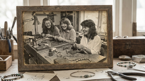 This is us in the little workshop where it all began, three sisters learning by doing, sharing tools and staying late to get one more detail right. We never set out to build a brand; we just wanted to make pieces we were proud to wear. Thirty five years later, we are still here, side by side, with the same hands and the same quiet determination behind every design.