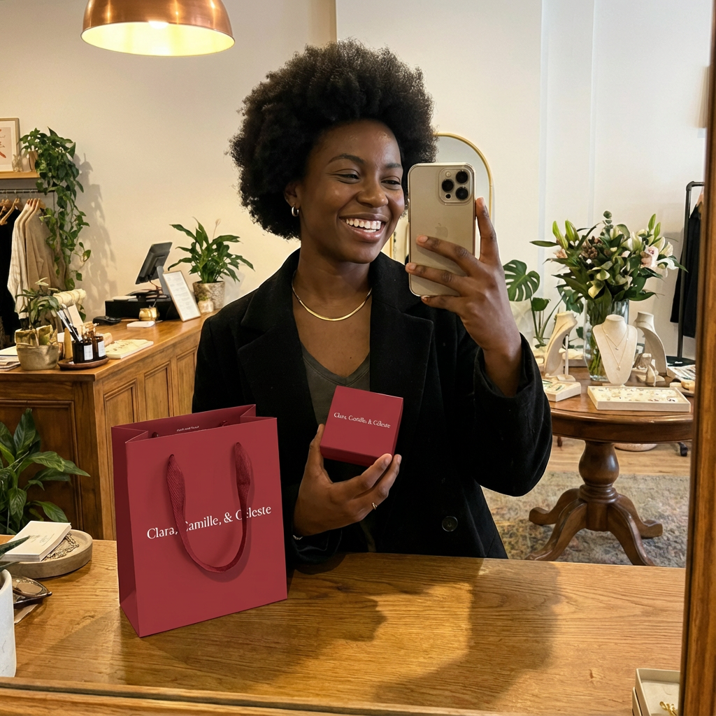 Beautifully packaged and ready to give, without the waste. Every order arrives in our reusable signature box or soft pouch, designed to be kept, not thrown away. We work with recycled and responsibly sourced materials wherever possible, and pack your pieces using minimal, recyclable packaging. If needed, we’ll happily handwrite any note you’d like included, so your gift feels personal and thoughtful as well as kind to the planet.