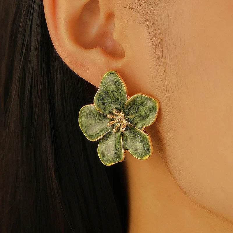 Vintage Green Enamel Flower Stud Earrings