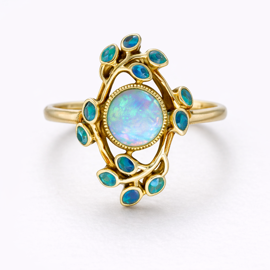 Blue Ring Vintage Crystals and Opal