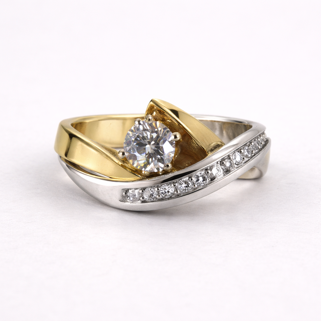 Vintage Irregular Gold & Silver Zirconia Ring
