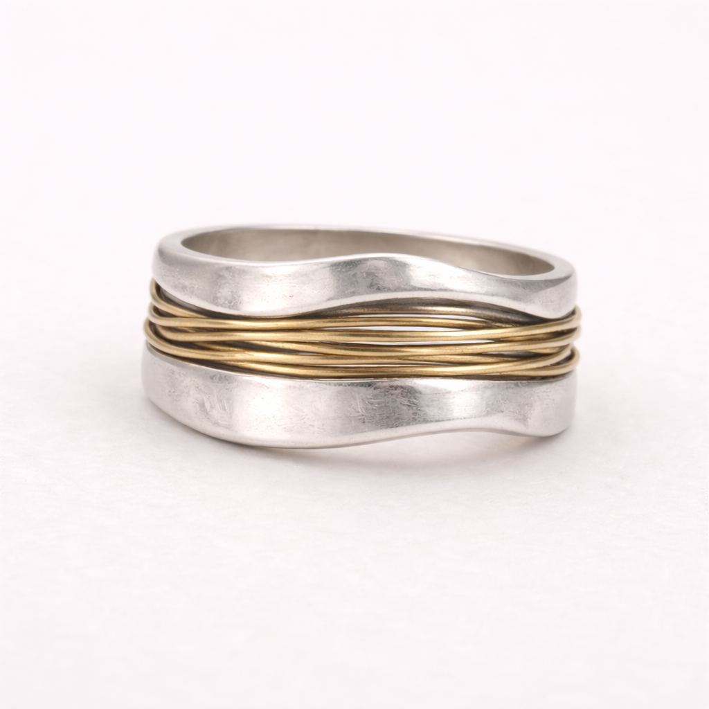 Silver Golden Threads Ring